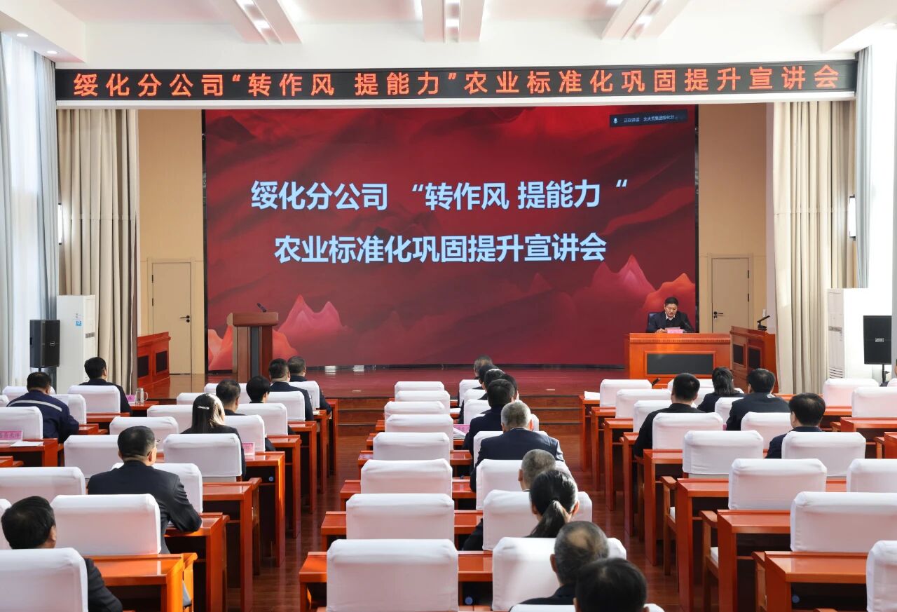 為深入貫徹落實國家農(nóng)業(yè)農(nóng)村部、省委及集團(tuán)黨委關(guān)于推動糧食作物大面積單產(chǎn)提升的部署要求,鞏固拓展綏化分公司農(nóng)業(yè)生產(chǎn)標(biāo)準(zhǔn)化成果,切實推動各級黨員干部職工作風(fēng)轉(zhuǎn)變、能力提升。11月13日,綏化分公司舉辦“轉(zhuǎn)作風(fēng) 提能力”農(nóng)業(yè)標(biāo)準(zhǔn)化鞏固提升宣講會。分公司黨委書記路宏民,分公司黨委副書記、總經(jīng)理謝國華,分公司領(lǐng)導(dǎo)焦偉、賈立軍、彭志祥、詹思遠(yuǎn)出席會議。分公司黨委副書記、工會主席付余仁主持會議。